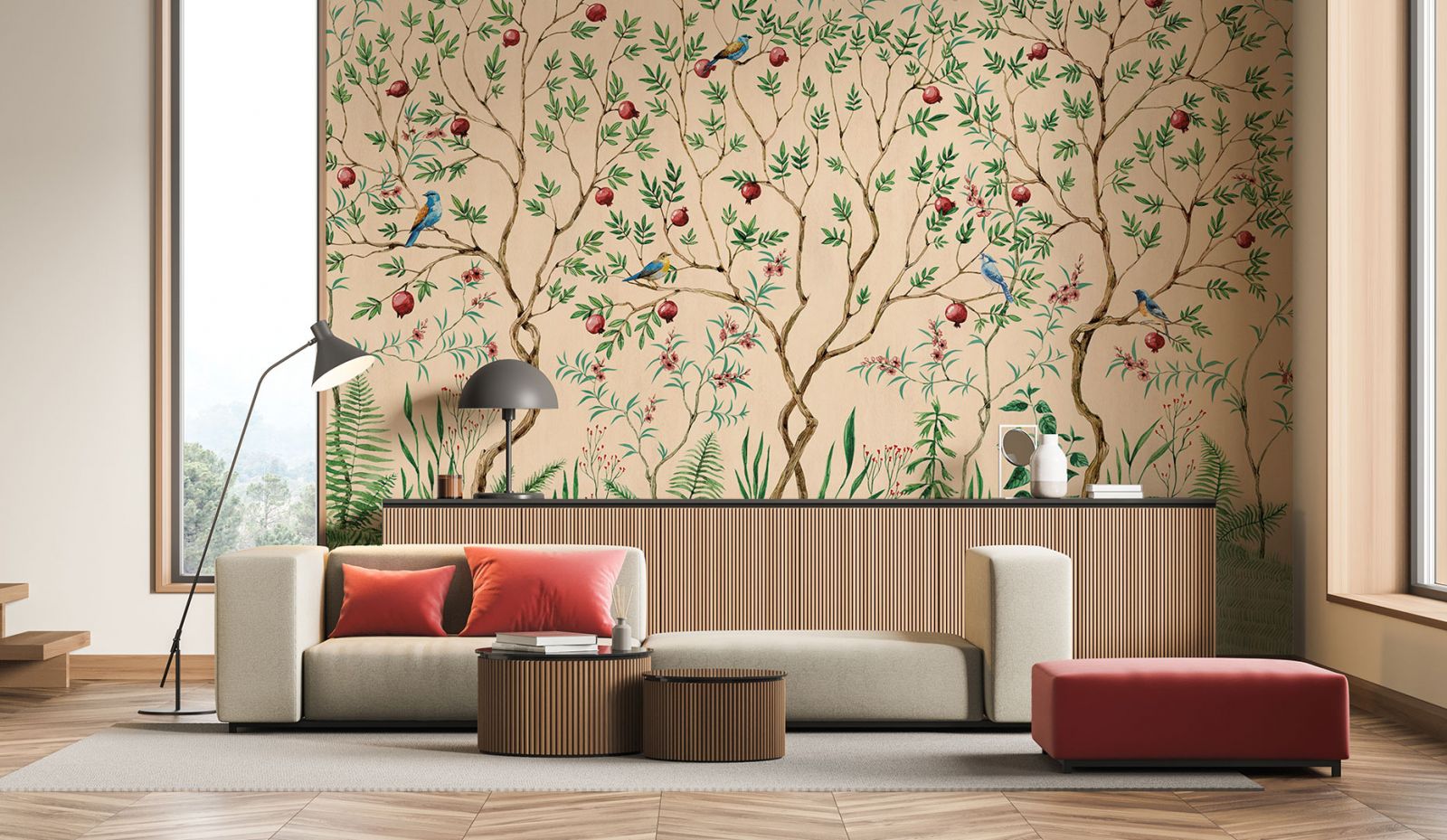 Для большинства современных дизайнеров такое понятие, как «чистый стиль», уже давно не актуально и живёт где-то на страницах учебников по классическому дизайну. Это легко можно сказать как о дизайне интерьеров, так и об одежде. Изо дня в день мы видим, как в пару к легкому летнему платью девушки выбирают удобные кроссовки, а не туфли-лодочки. Или строгий деловой костюм бизнес-леди дополняют массивные пластиковые серьги и браслеты. Люди прибегают к таким приёмам комбинации, смешения, потому что им так комфортно и потому что они хотят максимально точно выразить себя. То же самое и в дизайне интерьеров. Хочется создать в квартире максимально модное и технологичное пространство, но душа просит покоя и единения с природой? Почему бы и нет? Светлые стены, лаконичные мебельные гарнитуры, современная бытовая техника вполне могут сочетаться с обоями, на которых изображена цветущая сакура или вечноцветущие тропические заросли. Кстати, обои и фрески – один из самых простых, но действенных способов выражения того или иного стиля. Даже классики. Далеко не у каждого есть возможность и желание оформлять свои стены настоящей лепниной, как в европейских дворцах. Но можно поклеить на стену обои с изображением этих самых дворцовых стен.